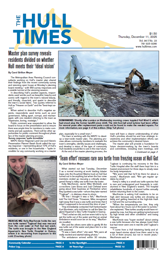 “In the wake of decommissioning both Hull Wind I and II, Hull Municipal Light Plant and the light board look forward to developing new initiatives and partnerships to enhance energy services,” the light plant’s statement concluded.