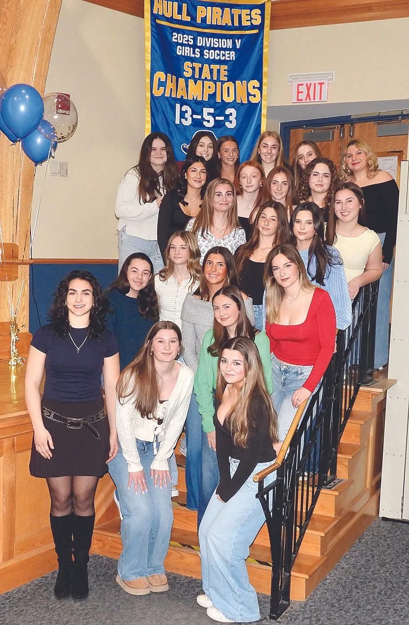 /A RING TO RULE THEM ALL: Excitement over the Hull High Girls Soccer team’s history-making win in the state championship back in November – the first for the girls soccer program – can still be felt throughout town. Last Thursday, the community came out to celebrate the players as they received their championship rings in a ceremony in the high school auditorium. [Skip Tull photo]